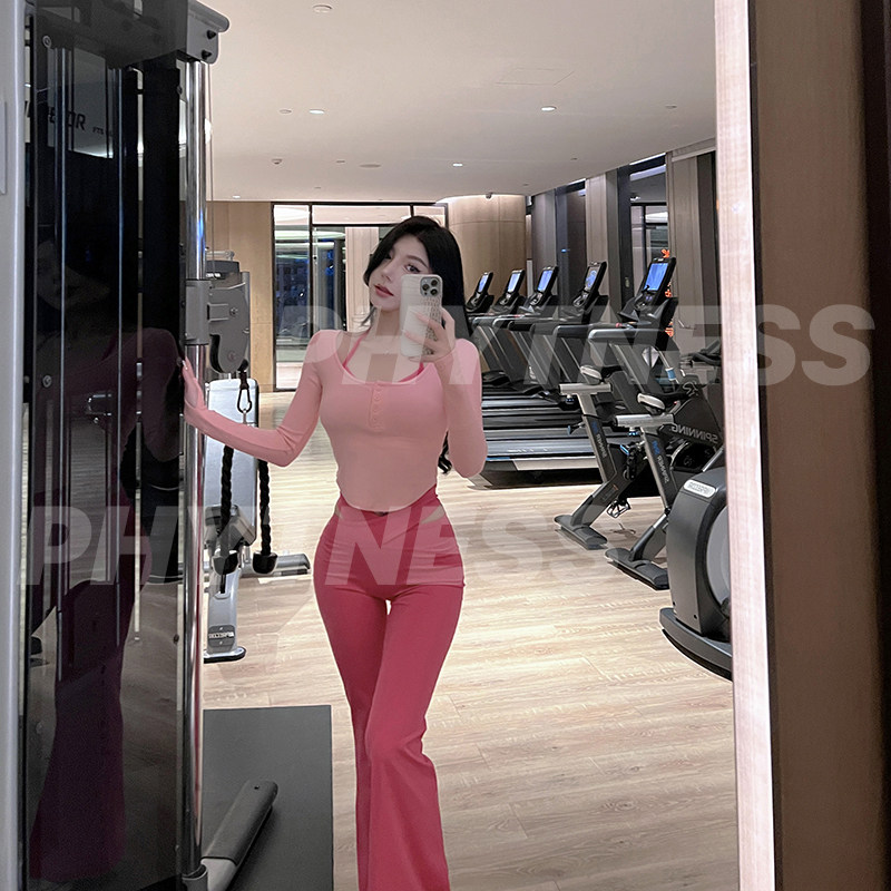 PHYTNESS 交叉腰頭微喇版型運動長褲