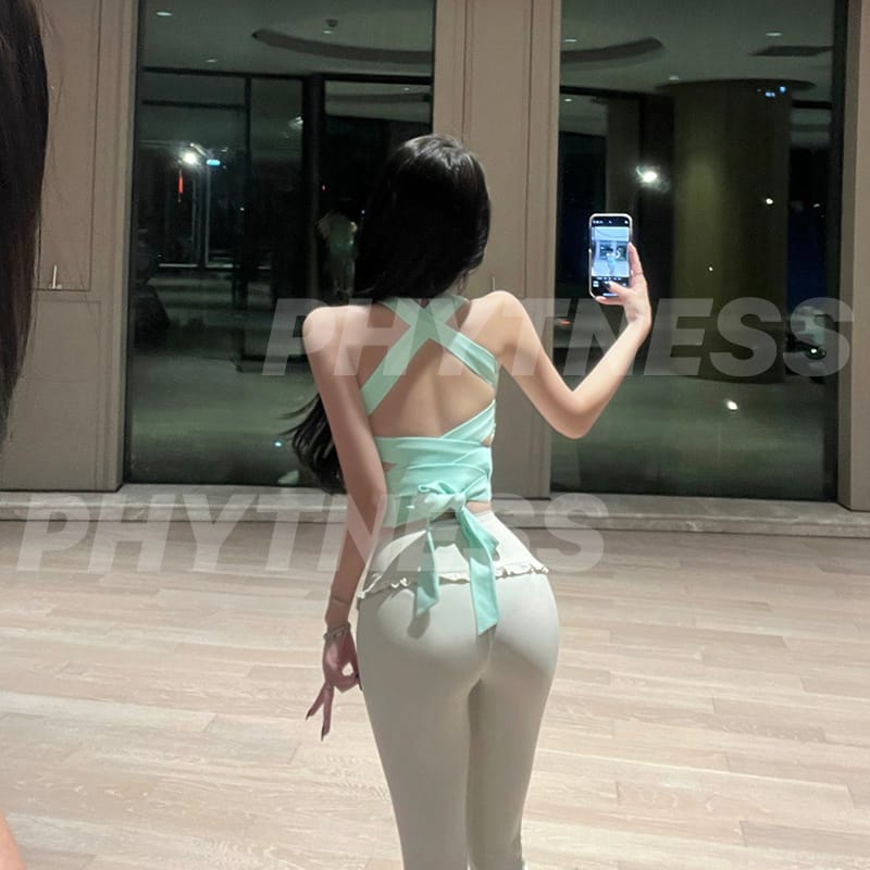 PHYTNESS 性感掛脖機能感健身瑜伽服透氣速乾背心帶胸墊