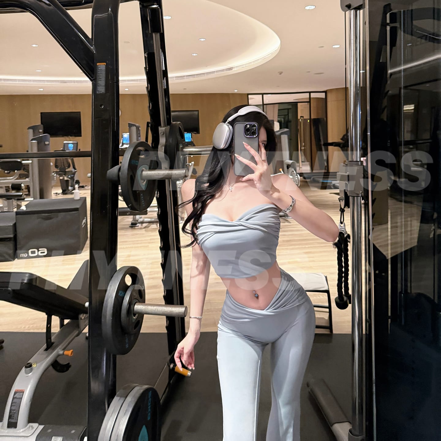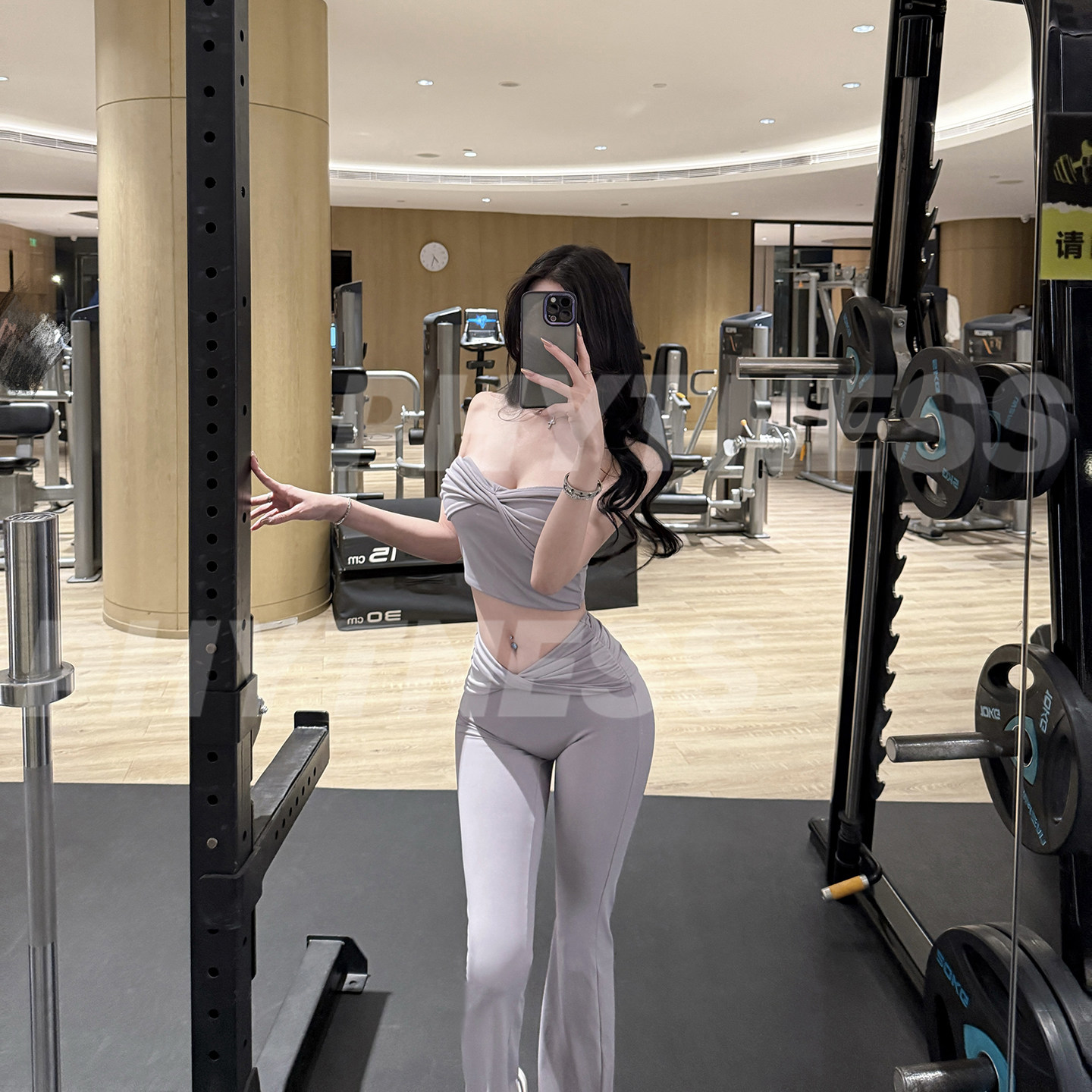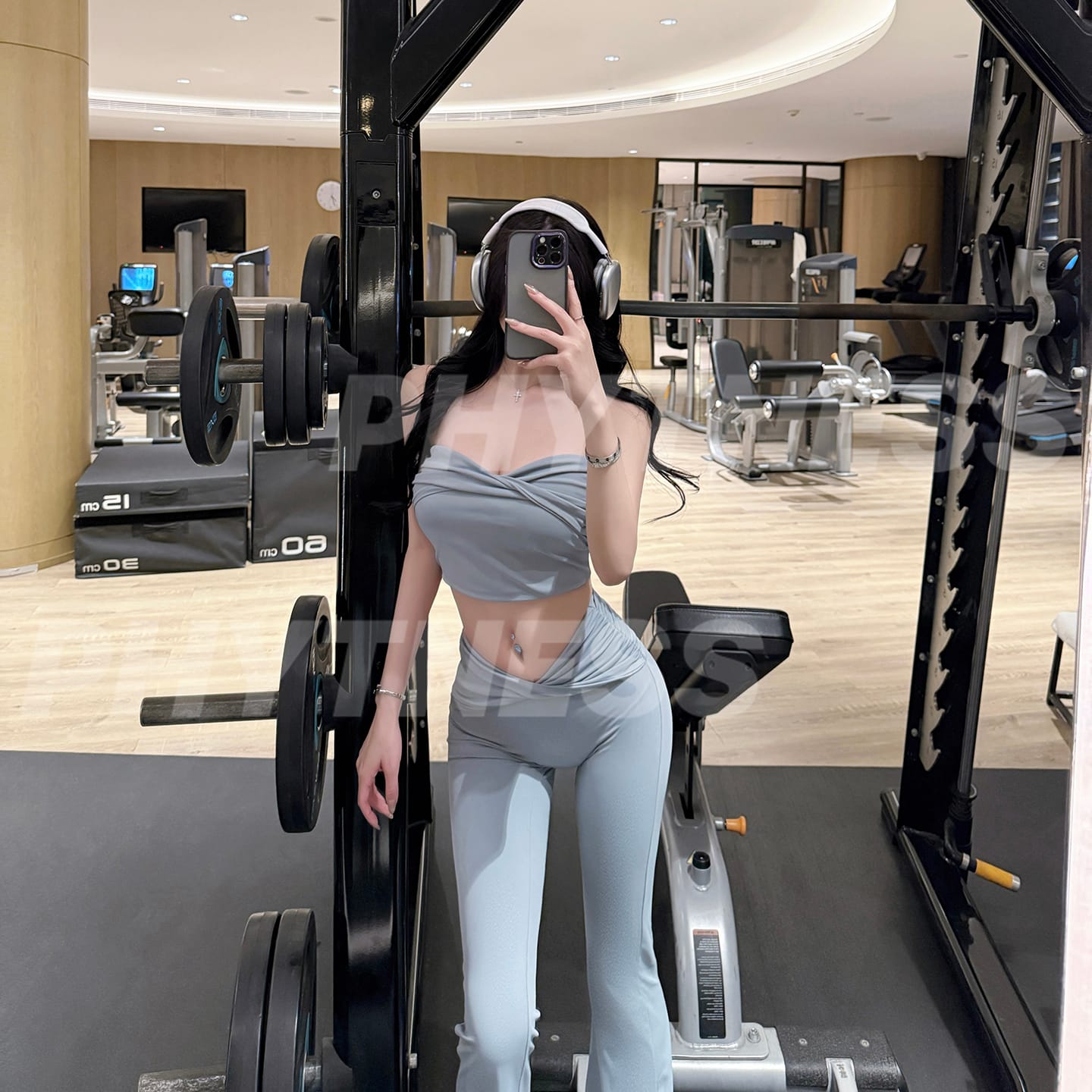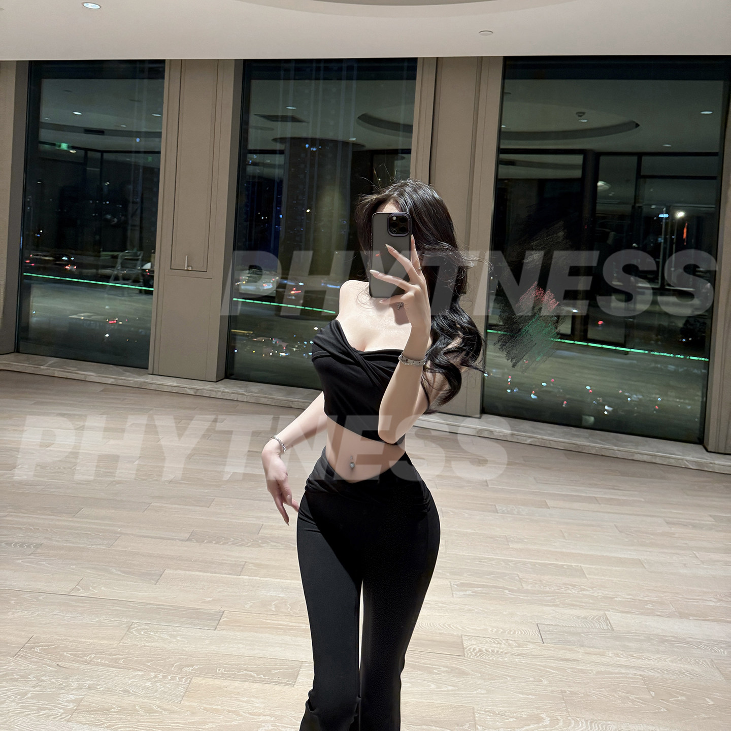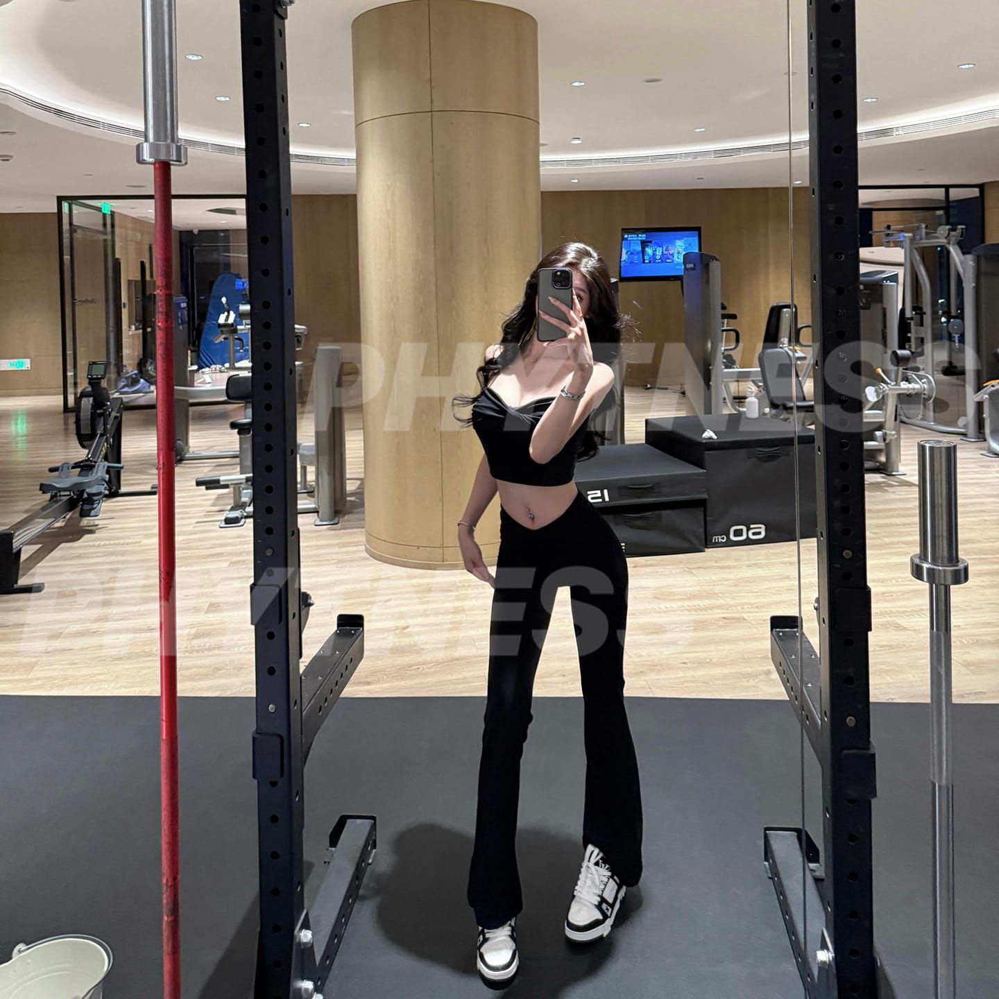 PHYTNESS 歐美扭結V腰修身微喇褲