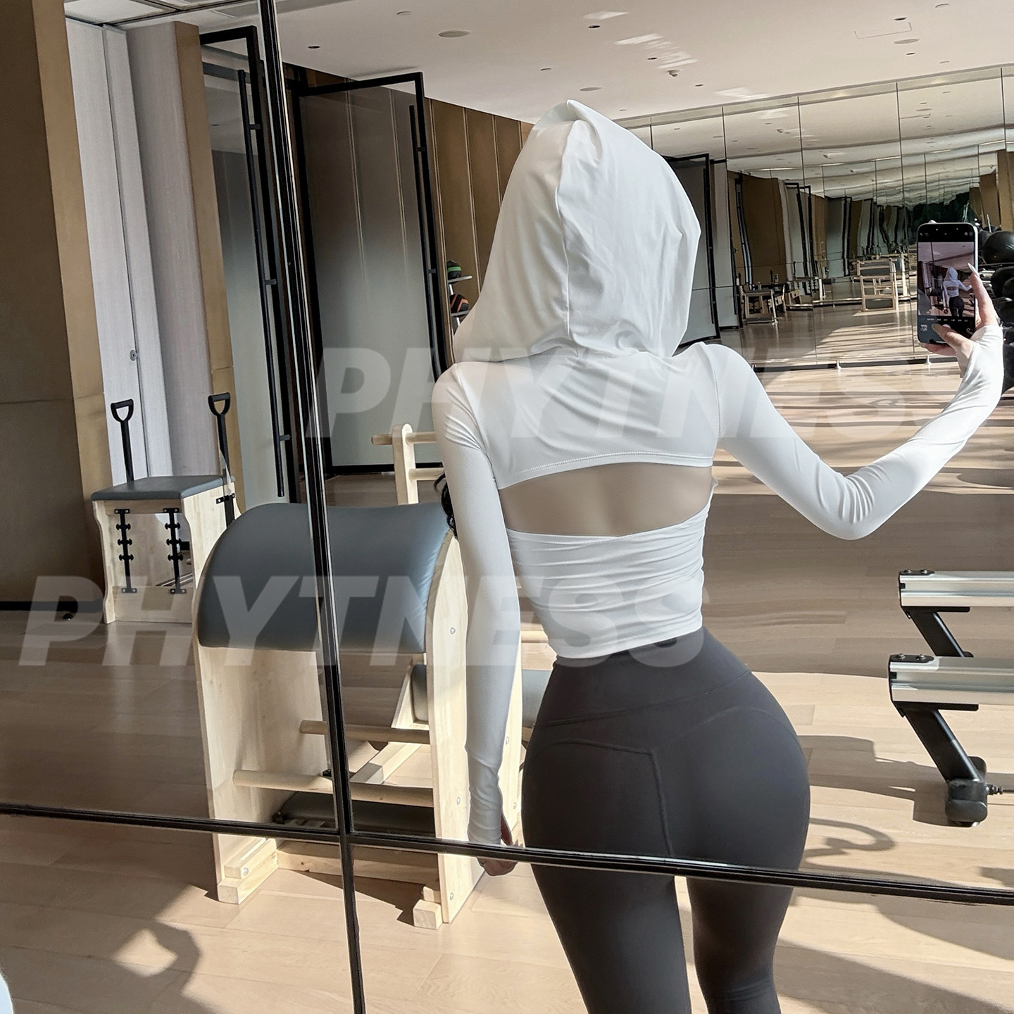 PHYTNESS 韓版緊身顯身材連帽外套長袖套指親膚面料
