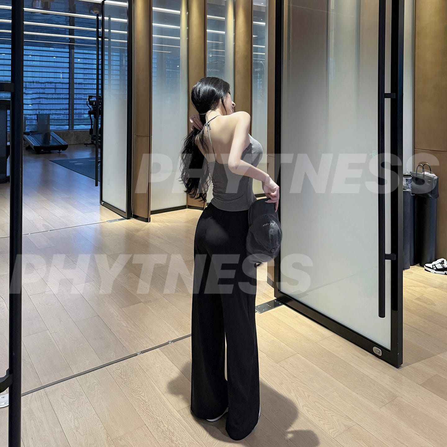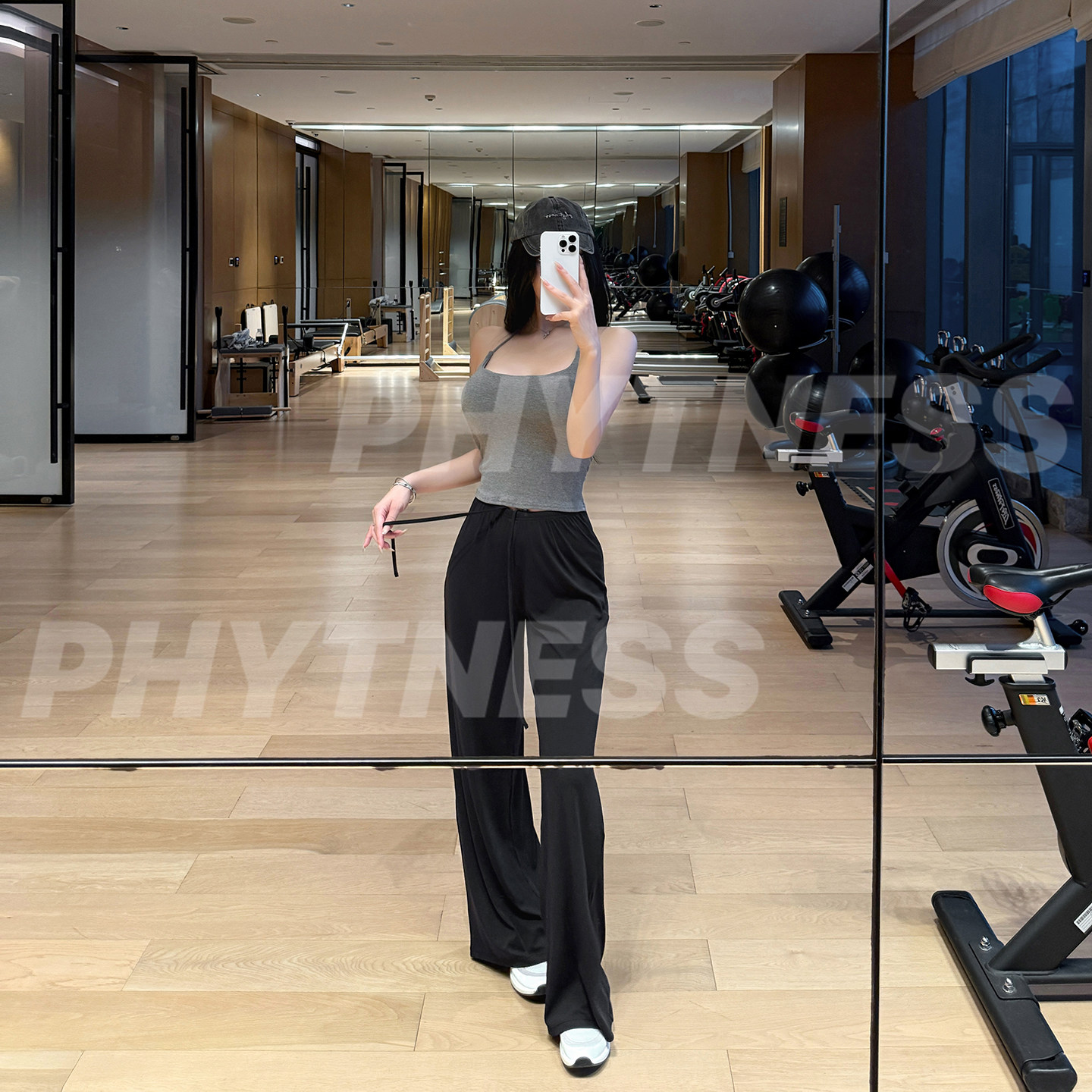 PHYTNESS 交叉腰頭微喇版型運動長褲