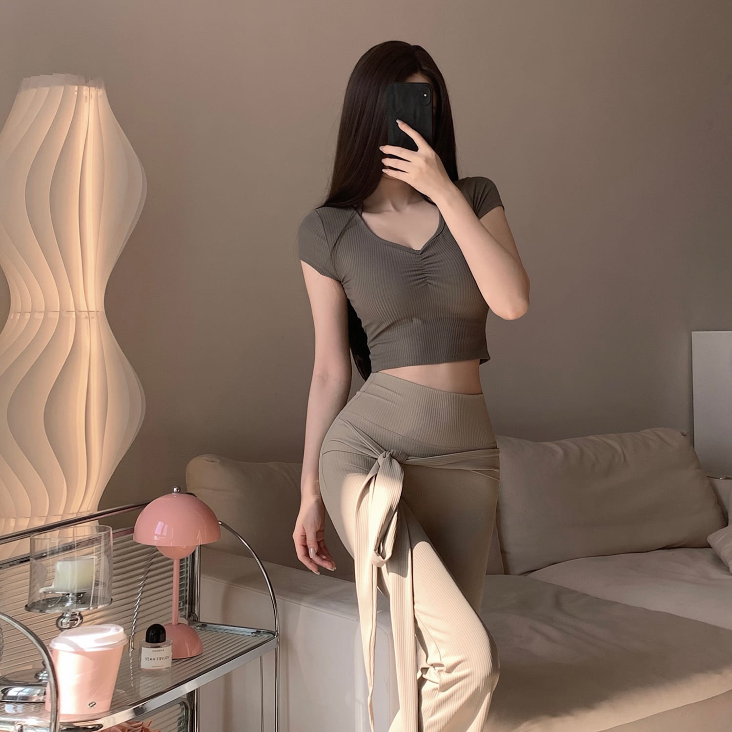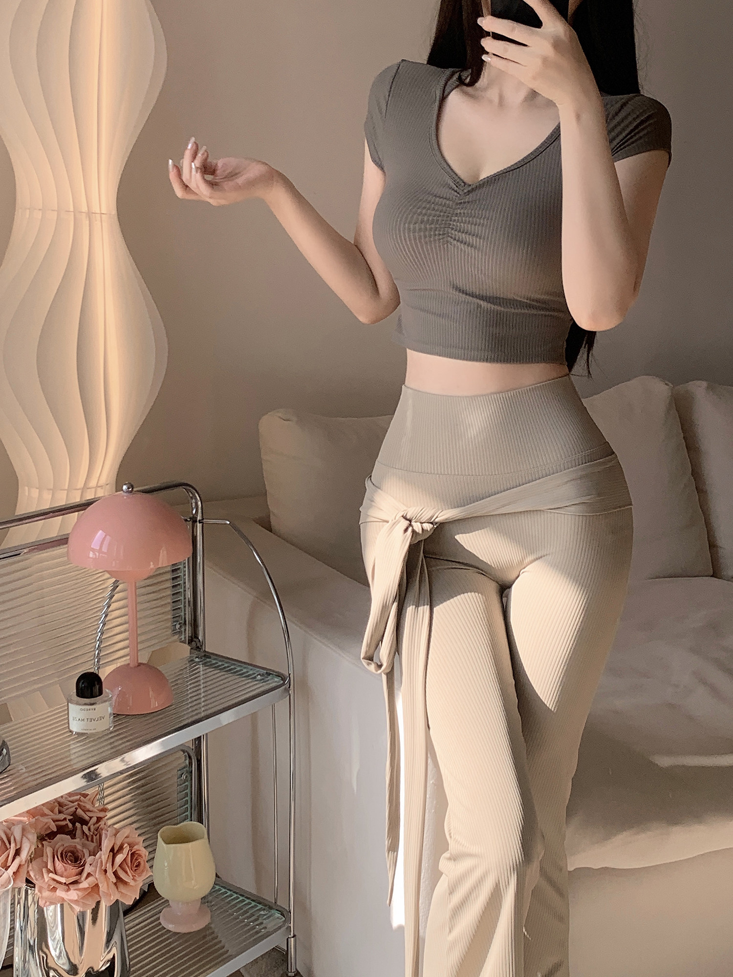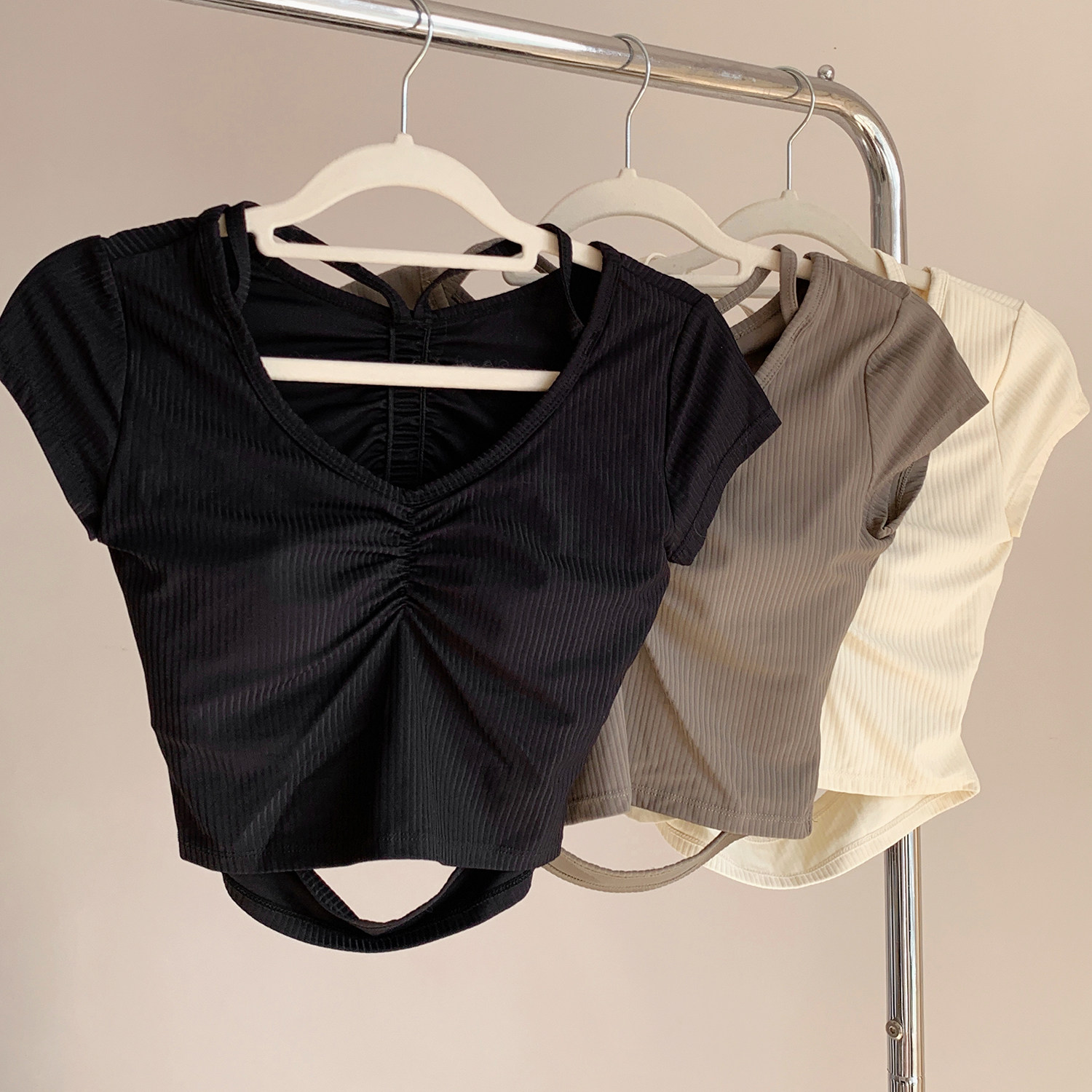 PHYTNESS 舒適修身抽褶鏤空美背瑜珈服上衣附胸墊