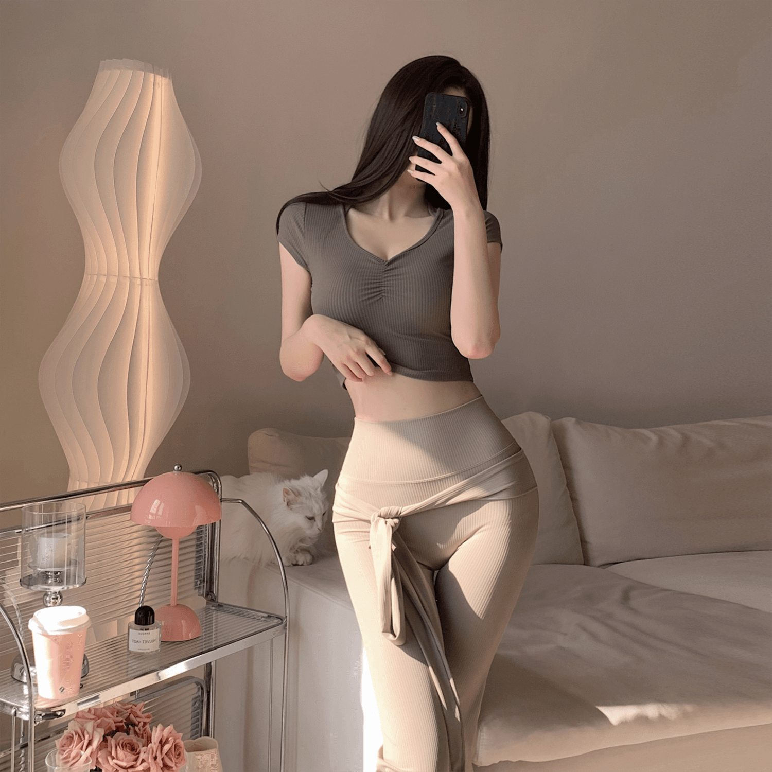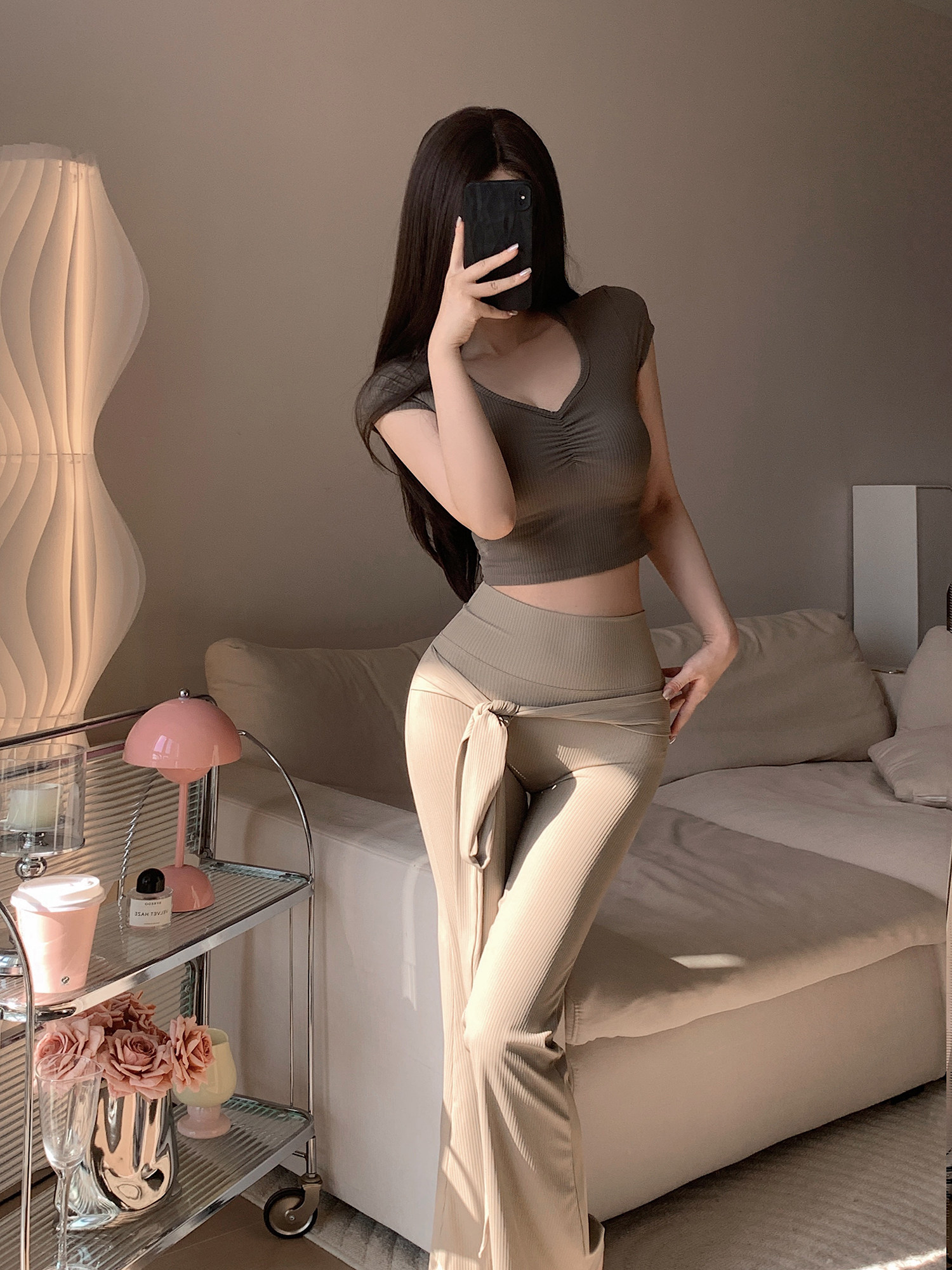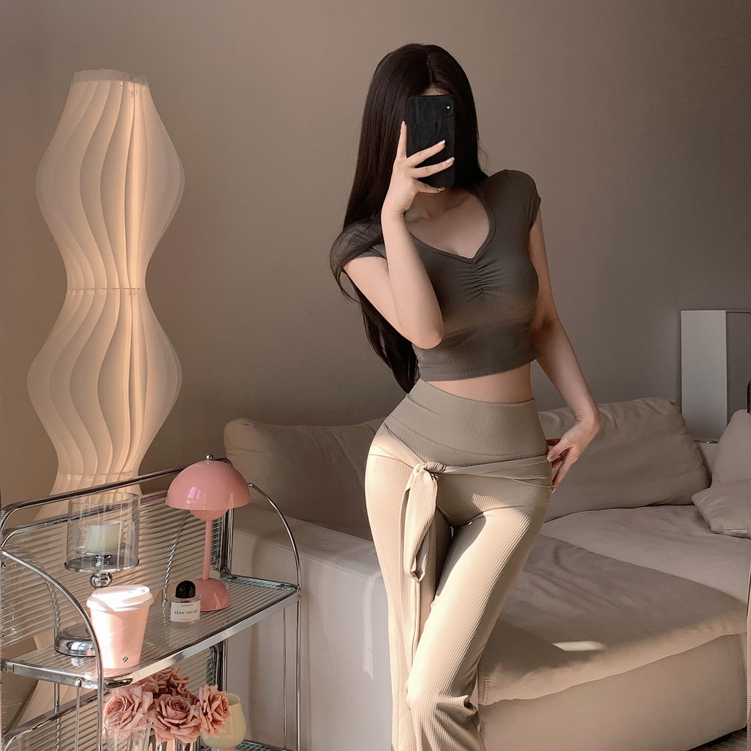 PHYTNESS 舒適修身抽褶鏤空美背瑜珈服上衣附胸墊
