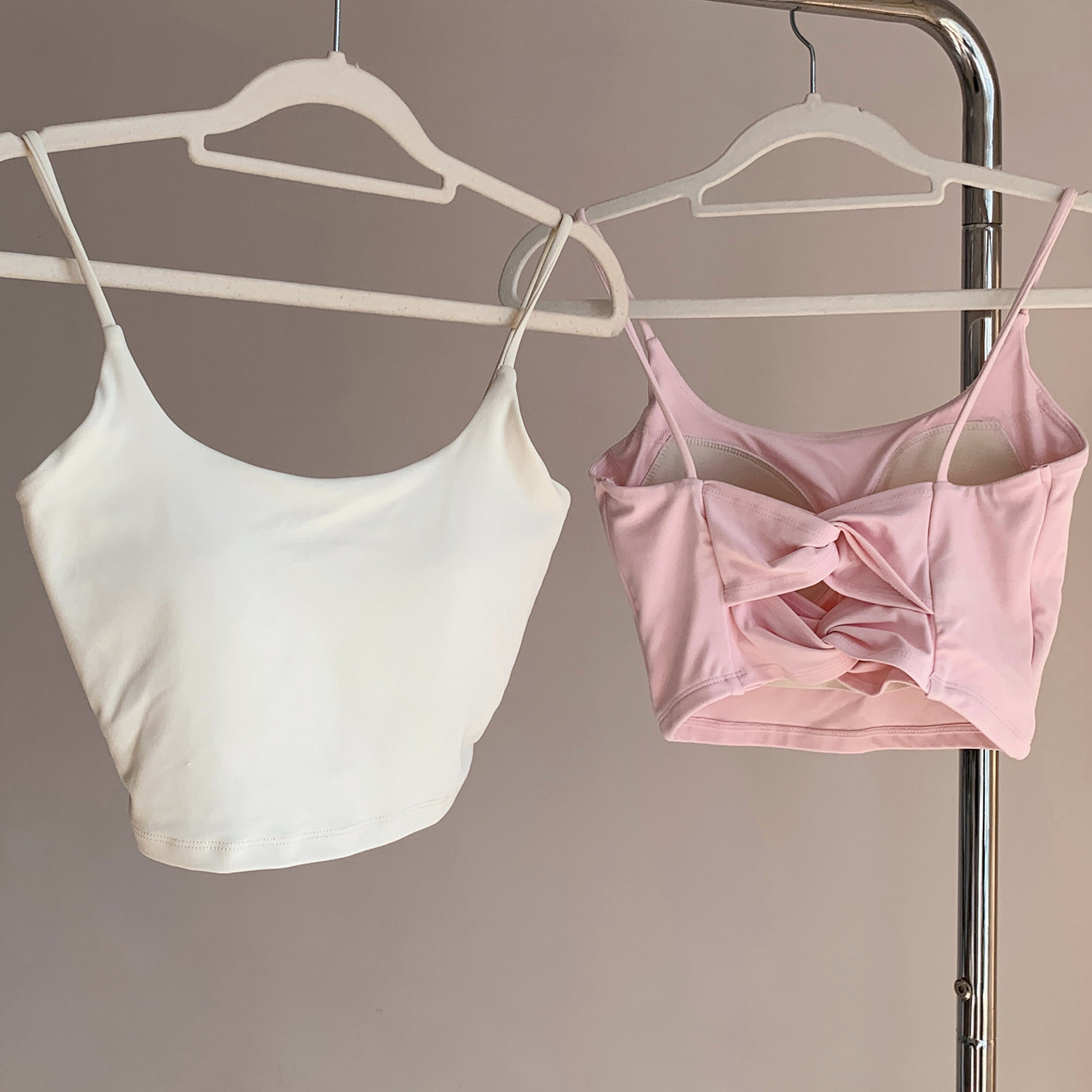 PHYTNESS 細肩帶扭結美背一體式固定胸墊瑜伽吊帶背心