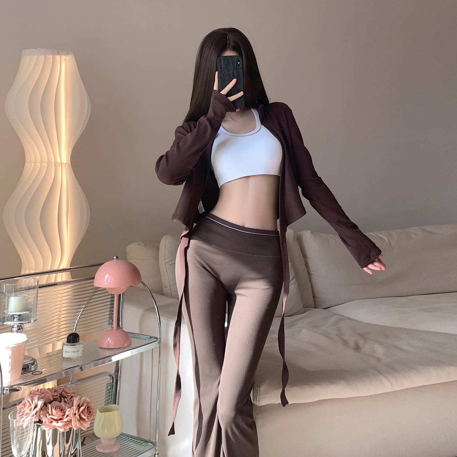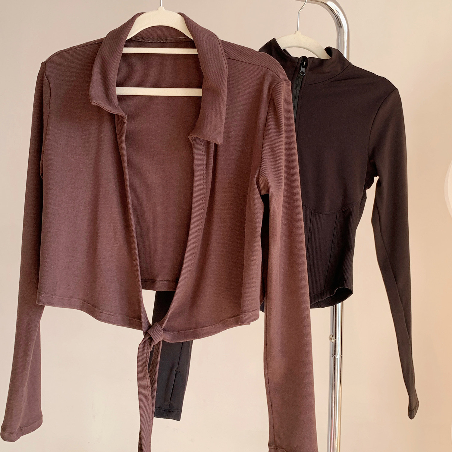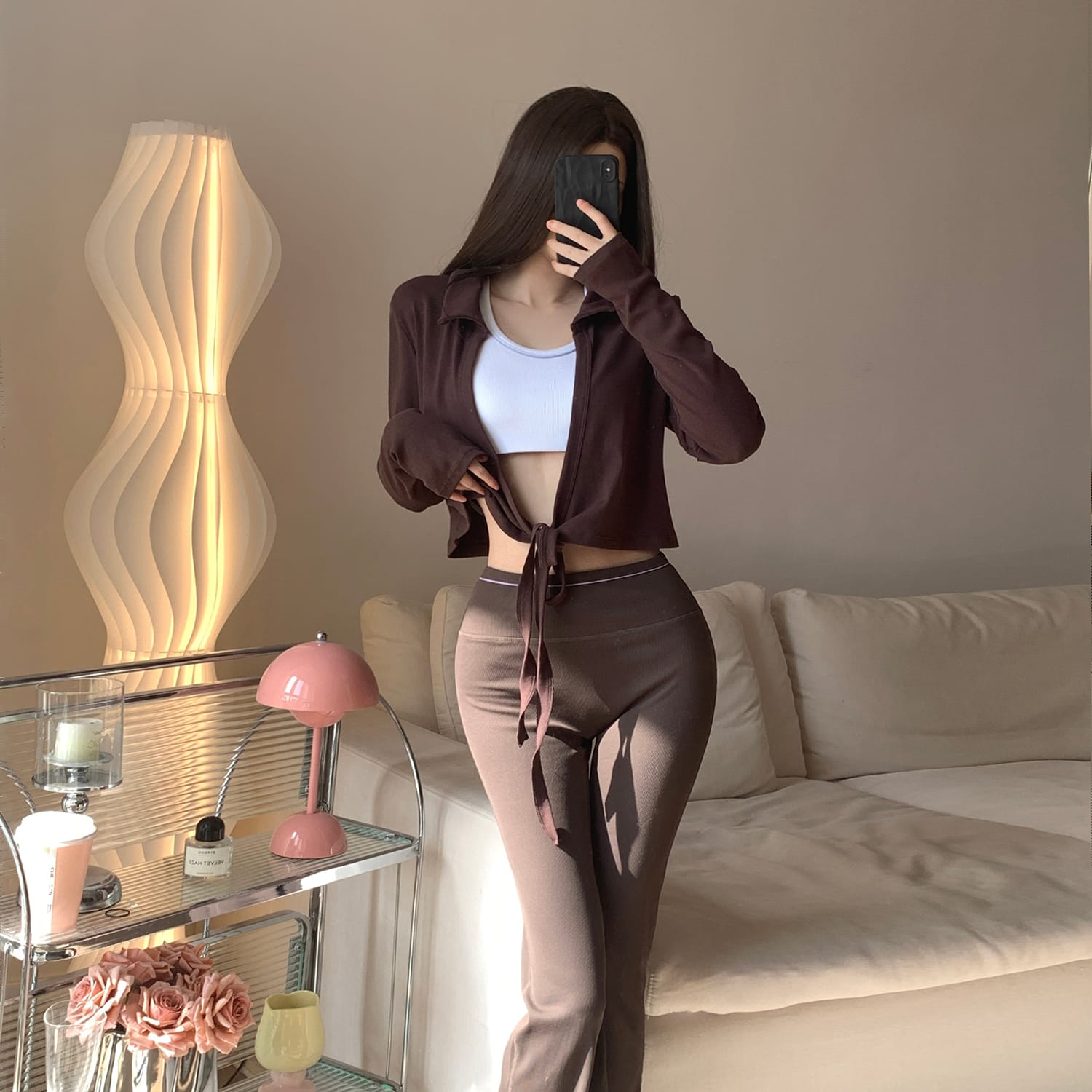 PHYTNESS 翻領綁帶罩衫顯瘦修身百搭短款長袖