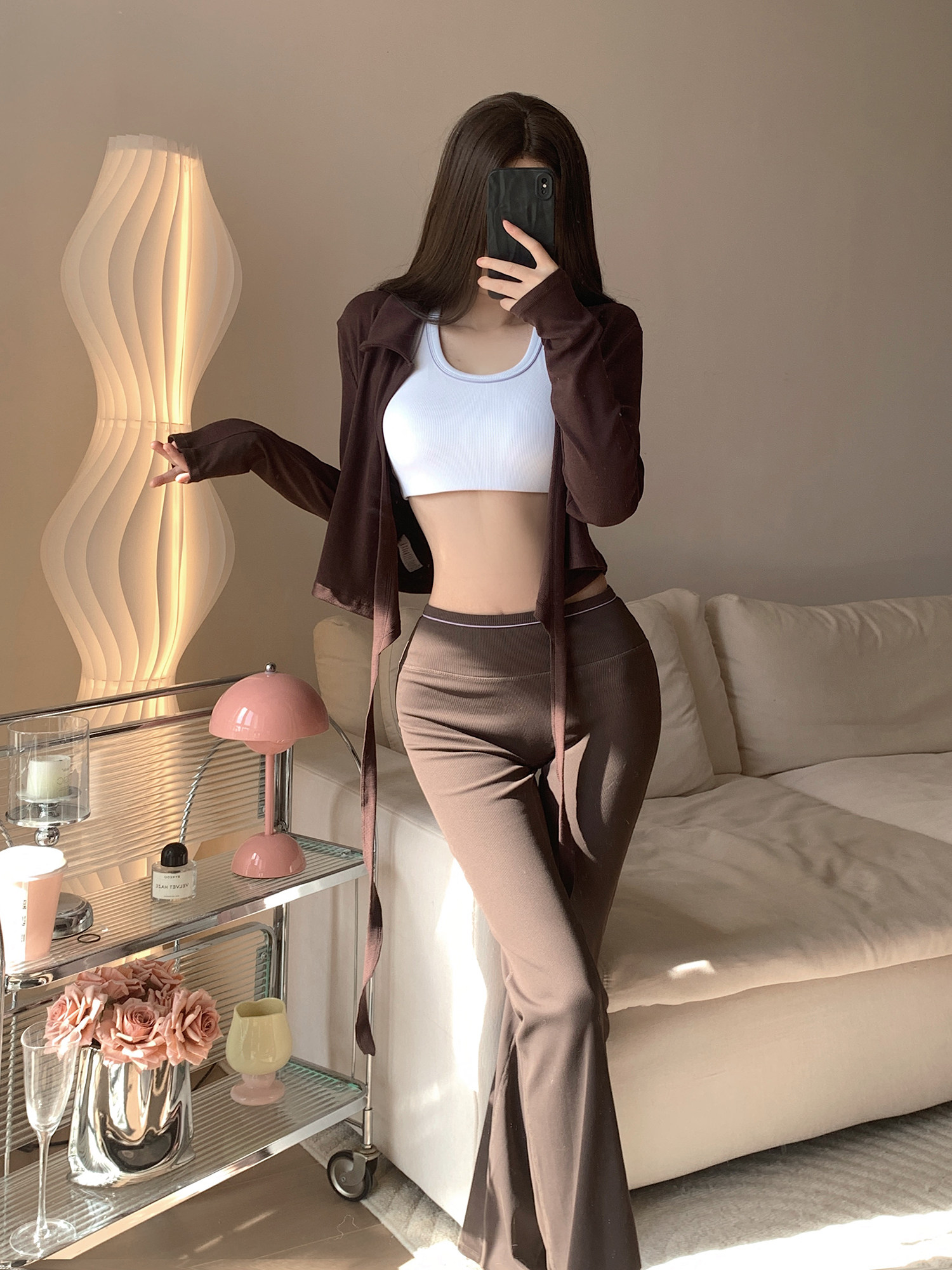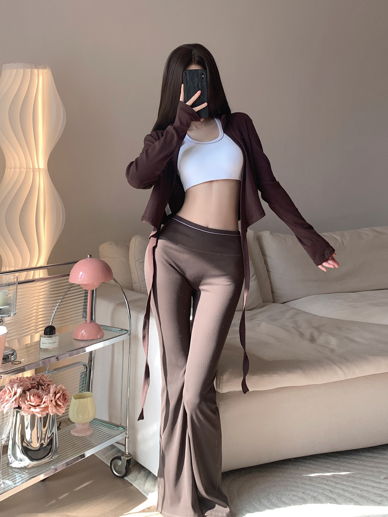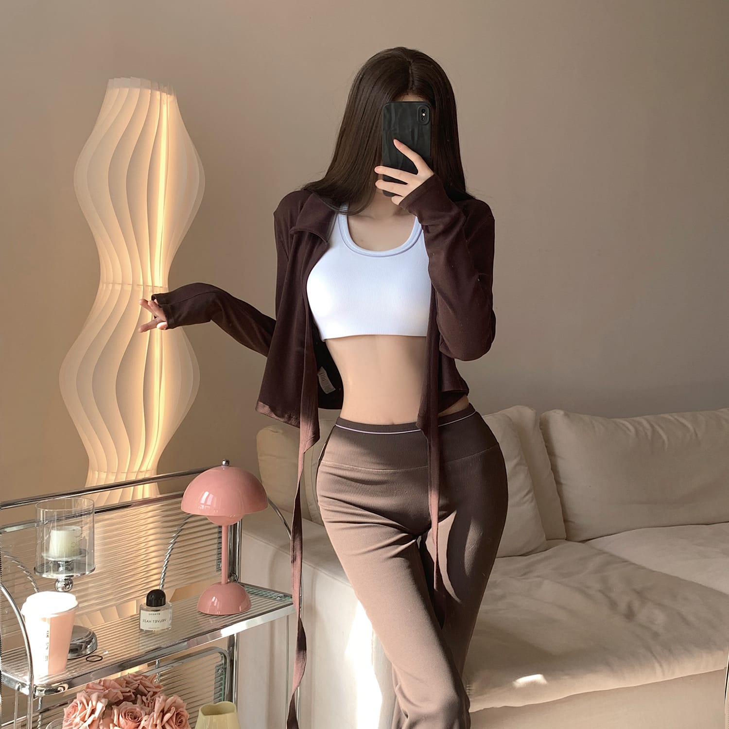 PHYTNESS 翻領綁帶罩衫顯瘦修身百搭短款長袖