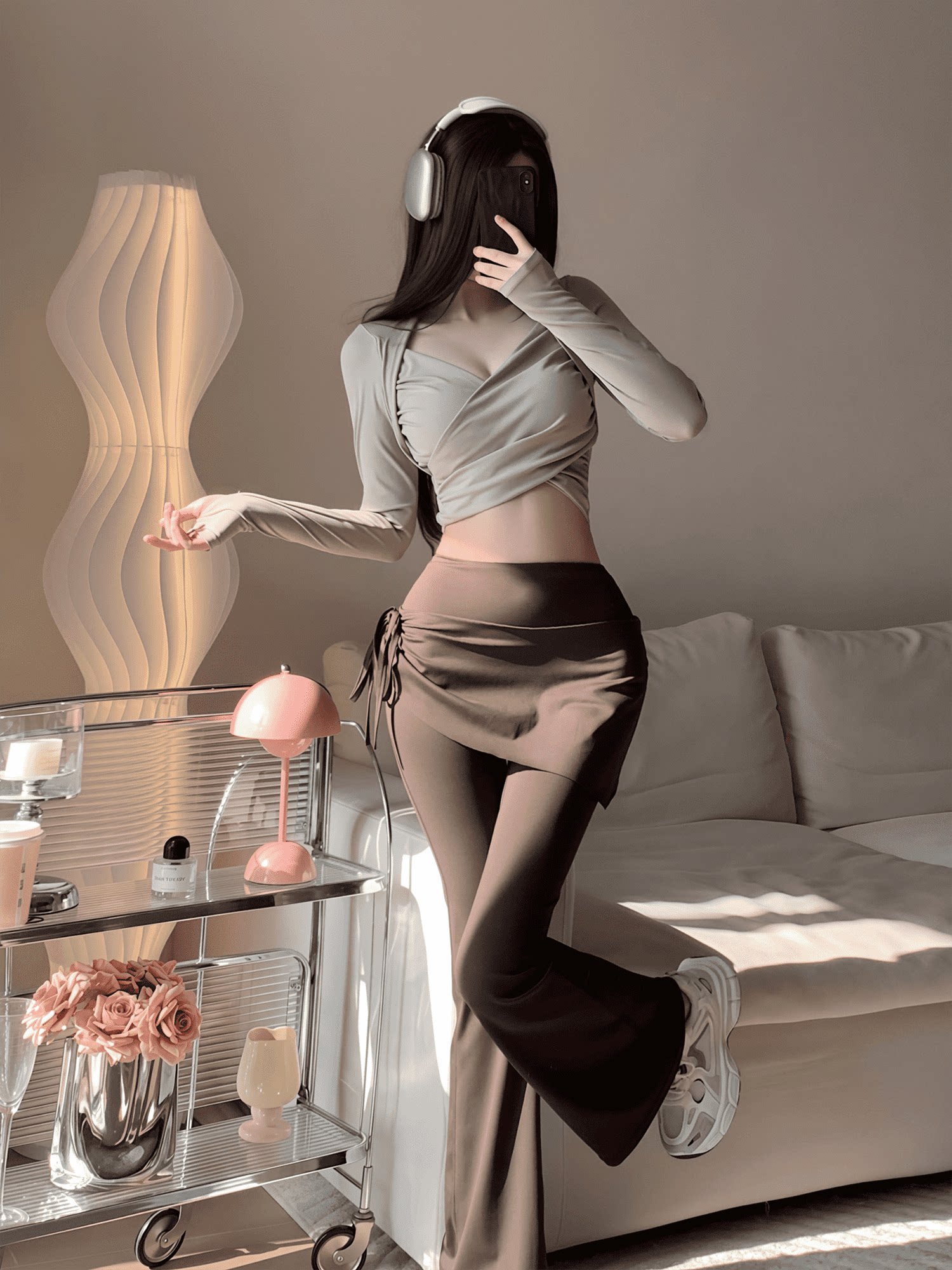 PHYTNESS 假兩件高腰綁帶遮臀防尴尬外穿瑜伽裙褲 數量