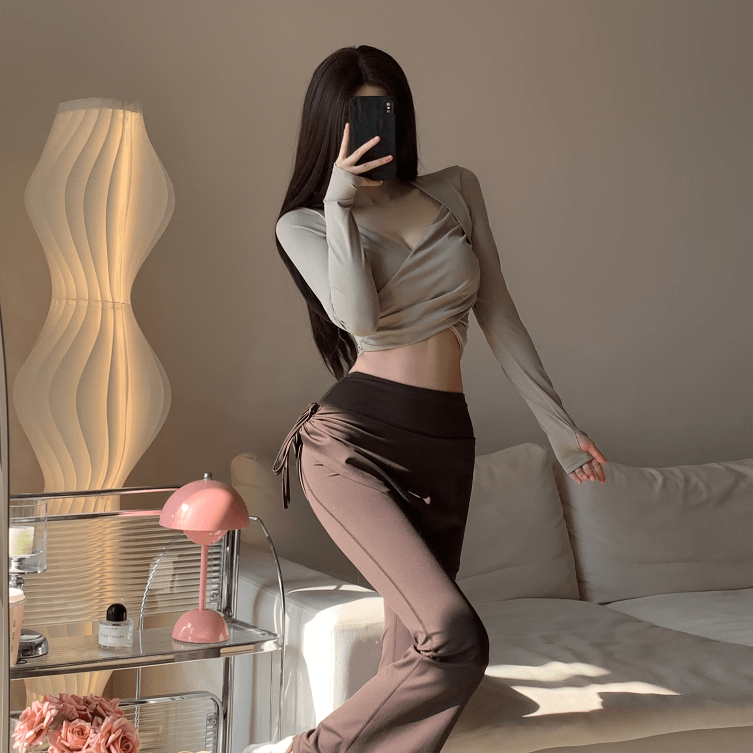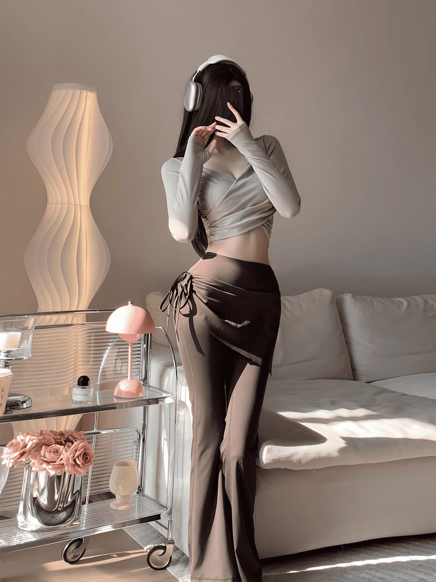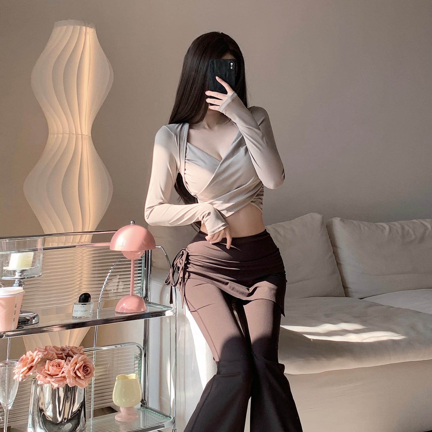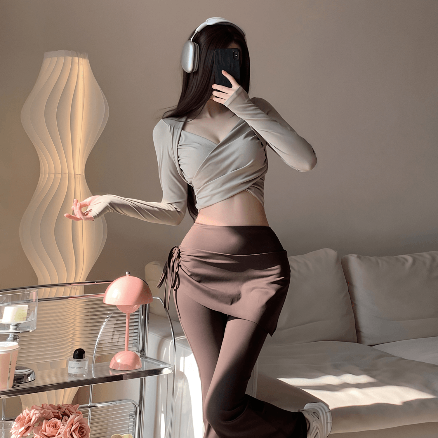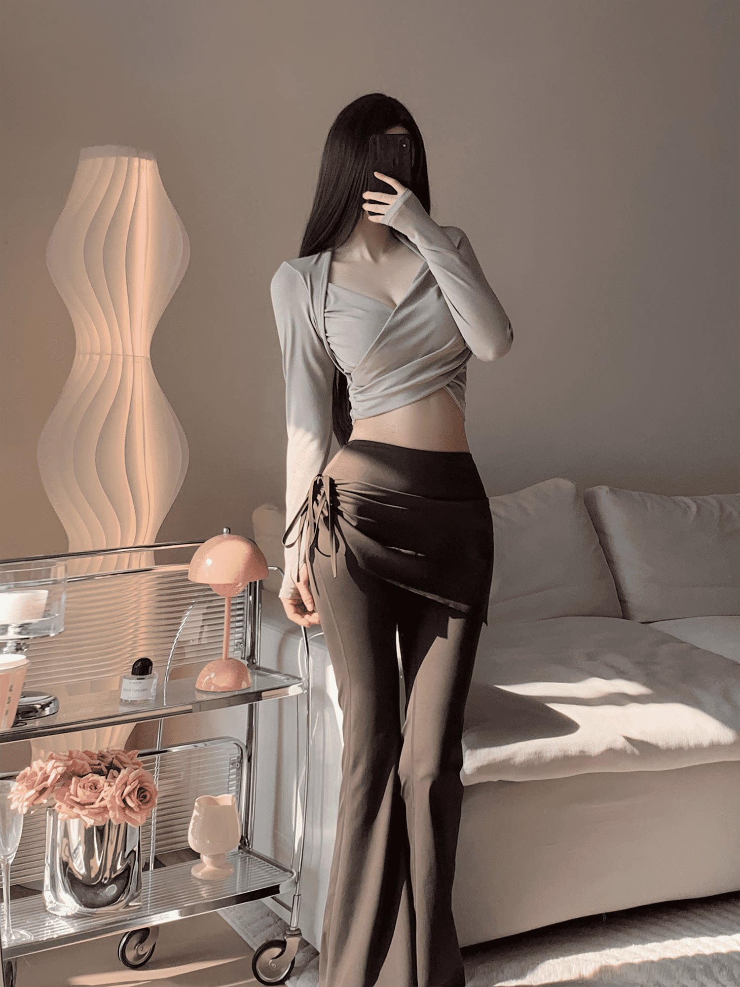 PHYTNESS 假兩件高腰綁帶遮臀防尴尬外穿瑜伽裙褲