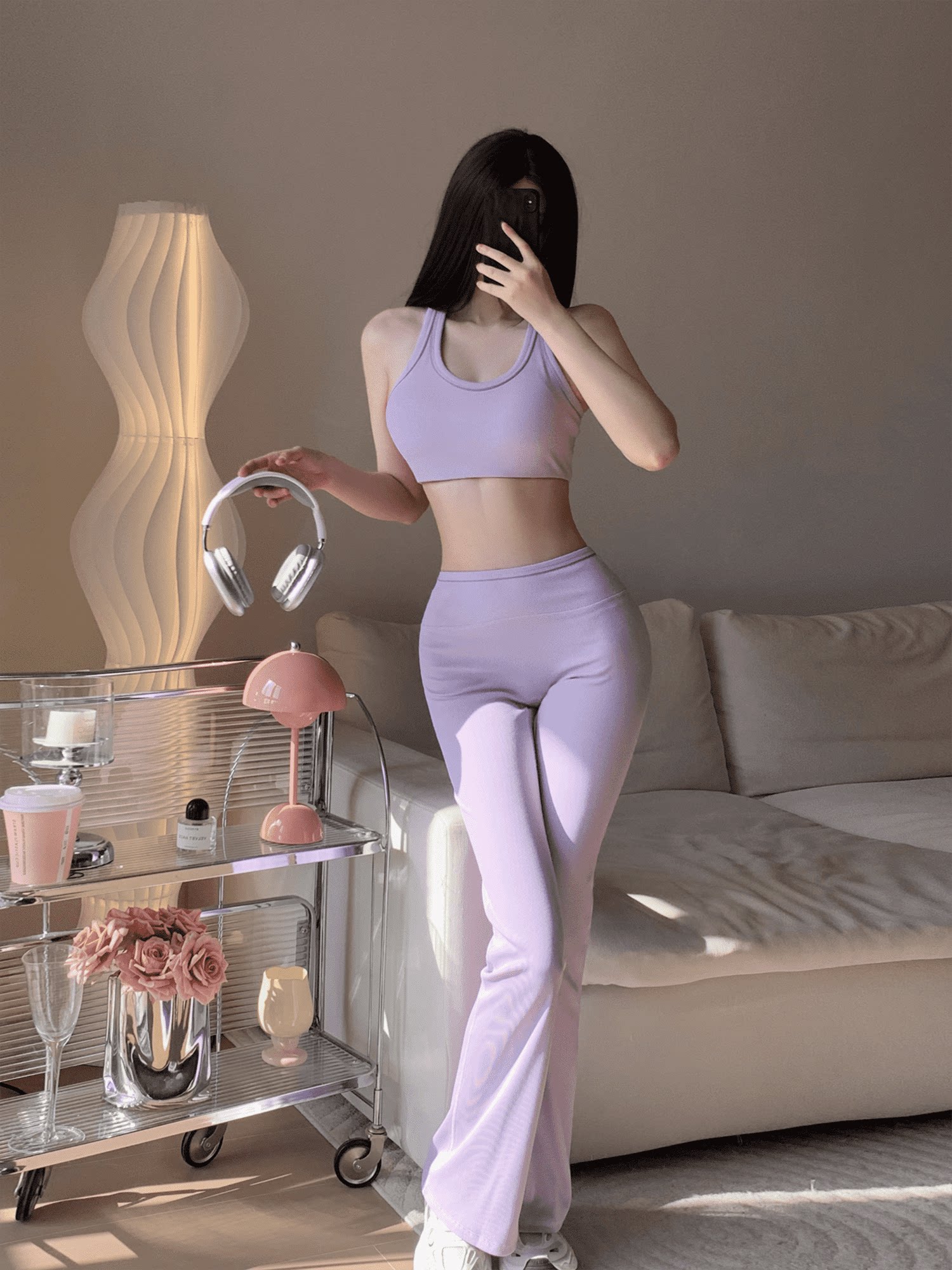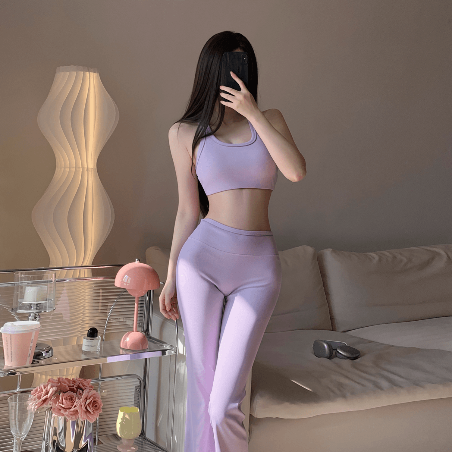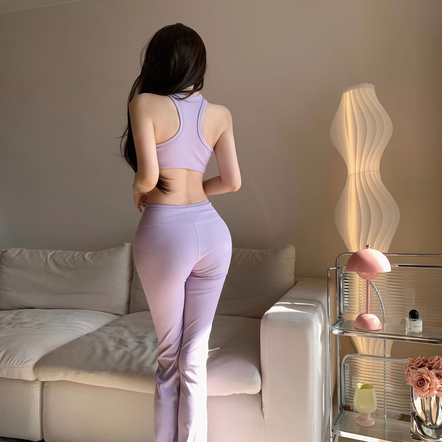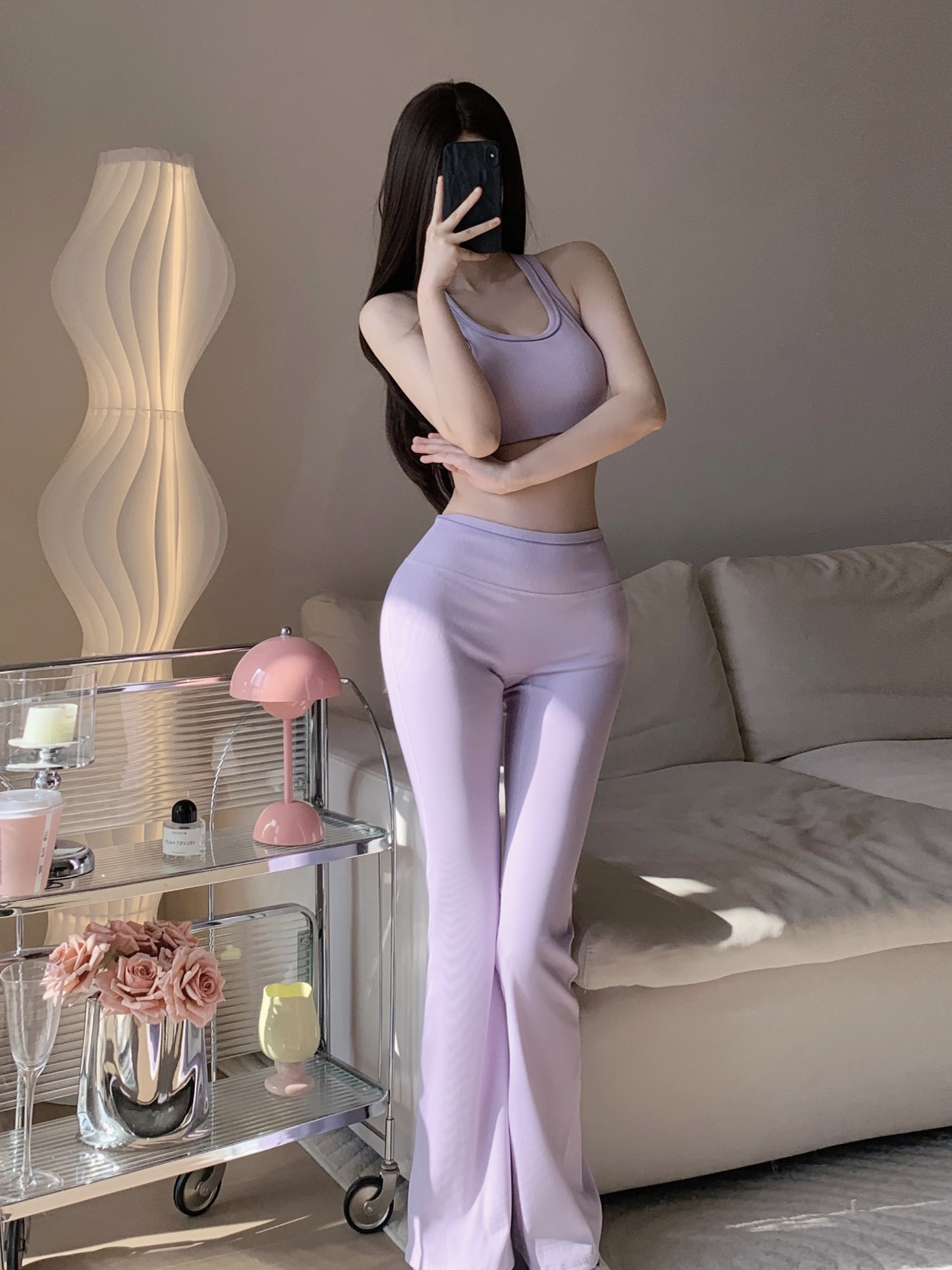 PHYTNESS 超塑形螺紋高腰提臀彈力普拉提微喇長褲